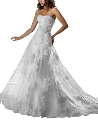 Strapless Chapel Train Lace Wedding Dress With Appliques