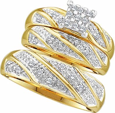 Men's Ladies 10k Yellow and White Gold .3 Ct Round Cut Diamond His Her Engagement Wedding Bridal Ring Set (ladies size 7, men size 10; message us for more sizes)